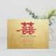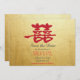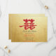 Cet élégant "Mariage chinois Double Happiness - Save the Date" présente un arrière - plan or et le caractère chinois traditionnel qui signifie "double bonheur".