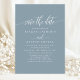 Cette minimaliste sauvegarde la carte date dispose de belles teintes bleues poussiéreuses jumelées à un élégant script de calligraphie. Avec un design moderne et simple, cette carte polyvalente est parfaite pour toute saison - printemps, été, hiver ou automne. Il dégage une atmosphère classe et élégante, parfaite pour un thème mariage romantique, chic ou sophistiqué.