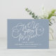 Dusty Blue Modern Design Calligraphie manuscrite Mariage Enregistrer les cartes de dates avec le texte Nous nous marions. Customisez avec votre texte pour le rendre unique