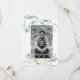 Photo simple, mais élégante enregistrer la date avec des feuilles doux vert sauge et bleu poussiéreux. Personnalisez avec votre propre photo et texte. Le mot "engagé" est à travers votre photo en élégant script manuscrit.an