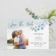 Élégant enregistrer la carte de date avec photo personnalisée, feuilles d'eucalyptus, lettrage manuel et lavage aquarelle. Ce design délicat a une aquarelle verdure et des feuillages dans les tons bleu poussiéreux gris et vert. Save the Date est écrit en calligraphie et le modèle est configuré pour vous personnaliser. Un design naturel, rustique et non floral qui s'adapte à une variété de thèmes allant du jardin classique au boho bio et au minimalisme moderne. Veuillez naviguer dans mon magasin, dans la collection poussiéreuse d'eucalyptus, pour coordonner les invitations, les cartes de boîtier et les accessoires d'expédition.