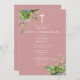 Cet élégant eucalyptus vert botanique poussiéreux rose rose première communion sainte sauf la date invitation peut être personnalisée avec votre information dans la typographie chic avec des initiales monogrammes au verso. Conçu par Thisisnotme©