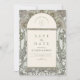 Un luxueux enregistrez la carte datant avec des cadres floraux Art Nouveau complexes en or doux sur un fond vert profond. Écrite de vignes délicates, de fleurs et de détails vintages, cette carte donne le ton d'une fête mariage intemporelle et romantique, au style classique et raffiné.
