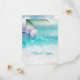Enregistrez la Date | Thème de mariage sur la plage. Belles eaux cristallines de l'océan scintillant au soleil, écume d'eau blanche sur la plage de sable propre avec une fronde de palmier et une fleur rose clair ornent le coin. Formel ou décontracté, pour un mariage sur la plage ou un mariage sur une île de destination - Cela fait partie d'une suite de mariage complète avec papeterie de mariage gratuite trouvée chez The Barefoot Bride https://the-BarefootBride.com