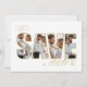 Cette suite mariage avec ses fleurs luxuriantes et spectaculaires du blanc crémeux au rose vif, ses accents tourbillonnants d'or et ses beaux arrière - plans d'aquarelle, crée une atmosphère élégante et romantique, donnant juste un indice de ce que les clients peuvent attendre lors de votre grande journée. Cette carte unique "Enregistrer la date" fournit un modèle pour ajouter facilement quatre de vos meilleures photos à afficher dans l'arrière - plan de lettres. Un texte d'angle floral et or frappant script ajoute à l'élégance globale de cette carte. Recherchez ID1022 pour voir tous les produits de cette suite mariage.