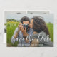Carte de Mariage Moderne avec Photo 'Save the Date' présentant un design simple avec une typographie élégante et script sur votre photo horizontale préférée. Le verso comporte deux photos carrées ainsi que votre message personnel en noir et blanc.