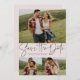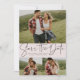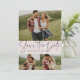 Avec trois photos et un script moderne écrit "enregistrer la date" en gris ardoise sur un arrière - plan rose vif, cette carte est la façon idéale d'annoncer votre fiançailles et mariage à venir à vos amis et votre famille. Le texte blanc est audacieux et moderne mais toujours sophistiqué. Le texte personnalisable sur le devant a de la place pour les noms, la date, l'emplacement et d'autres informations comme un site Web mariage. Le dos est rose assorti à un blanc étoilé. Vous pouvez modifier la couleur en cliquant sur "customiser plus loin".