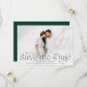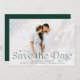Annoncez votre mariage dans le style avec ces élégantes photos enregistrer les cartes de date. Le design comprend votre photo horizontale à fond saigné avec "Save the Date" en lettres vert chasseur. Personnalisez la photo moderne enregistrer la carte de date avec vos noms, date mariage, emplacement du mariage et détails de l'invitation. Le dos de la carte contient des détails supplémentaires comme votre site mariage en lettres blanches sur un arrière - plan vert chasseur solide.