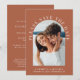 Mariage moderne en terre cuite enregistrer la carte de date avec votre photo dans une arche et "S'il vous plaît enregistrer la date" dans élégante typographie blanche. Sous votre photo, ajoutez vos prénoms, votre date de mariage et votre emplacement. Au contraire, personnalisez l'enregistrement des détails de la date dans une simple typographie blanche et entrez l'adresse URL de votre site Web mariage pour créer un code QR scannable pour que vos invités puissent facilement visiter votre site Web.