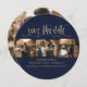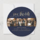 Elégant bleu marine et or mariage 4 photo enregistrer les cartes de date avec un titre de script en faux or moderne. Personnalisez facilement ce mariage bleu marine enregistrez la date avec vos images et les détails du mariage, y compris un site Web mariage.