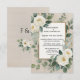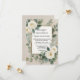 Annoncez votre jour spécial avec cette carte postale de Save the Date bohème rustique, conçue avec des roses blanches, de la verdure et un aspect toile de lin naturel. Parfait pour les mariages élégants à la campagne. Personnalisez avec vos noms et date.