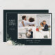 Elégante aquarelle feuillage botanique et arrangement floral blanc, à la date 3 carte photo. Caractéristiques, chasseur foncé arrière - plans de couleur verte, typographie blanche et calligraphie "le" accent graphique.