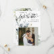 Cette invitation "save the date" présente des arrangements élégants de feuillage de verdure à l'aquarelle et de feuilles, une belle calligraphie et une police de caractères typographique serif simple avec un cadre photo carré sur fond blanc et un code QR pour un look épuré, minimaliste et moderne, ce qui est une belle façon d'annoncer votre mariage imminent. Annoncez à votre famille et à vos amis que vous vous mariez avec cette invitation et ajoutez une touche personnelle avec de belles photos de vous et de votre futur meilleur moitié. La simplicité de ce design ajoute une touche d'élégance à votre mariage. Cela fonctionne bien avec de nombreux thèmes de mariage et est définitivement un excellent ajout à votre mariage. Il suffit de personnaliser les noms et le texte en quelques étapes faciles et de personnaliser la carte d'invitation avec votre photo du couple heureux et de remplacer le code QR par le vôtre.