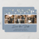 Elégante photo de mariage bleu poussiéreux enregistrer les cartes de date avec une police de script moderne. Personnalisez facilement cette photo bleu poussiéreux sauvegardez la date avec vos images et les détails mariages, y compris un site Web mariage.
