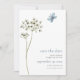 Elégant Fleur sauvage papillon QR Code Mariage bleu. Elégance minimaliste avec ce design fleur sauvage et bleu papillon aux accents bleu poussiéreux et arrière - plan sur le dos. Personnalisez facilement avec vos détails. Ajoutez un code QR à l'arrière pour que vos invités puissent scanner pour visiter votre site Web mariage ou supprimer l'exemple de code si vous n'en avez pas besoin. Modifiez le texte et les couleurs arrière - plans si vous souhaitez correspondre à votre propre thème de couleur mariage via l'option Modifier plus.