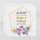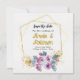 Annoncez votre mariage avec cette élégante carte de sauvegarde de date florale dorée. Le design comprend un motif floral et un cadre géométrique. Cette conception est une option de sauvegarde de date vraiment unique. Il s'agit d'une carte de sauvegarde de date de mariage classique qui fait partie d'une collection d'invitations de mariage.
