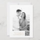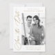 Annoncez votre prochain mariage avec cette carte de date sophistiquée et moderne, conçue pour les couples qui apprécient l'élégance et la simplicité. "Save the Date" est affiché verticalement sur le côté gauche dans une calligraphie dorée luxueuse, dressée contre un arrière - plan blanc immaculé pour un look intemporel. Votre photo fiançailles verticale est présentée sur la droite, créant un équilibre étonnant entre le texte et l'imagerie. Personnalisez le design avec vos noms, date mariage et emplacement en lettres d'or gras pour une touche cohésive et raffinée. Le dos de la carte offre de l'espace pour une photo supplémentaire, ainsi que votre site Web mariage et un code QR pour un partage aisé des détails de l'événement. Parfait pour les couples à la recherche d'une faire-part design et contemporaine, cette date de sauvegarde donne le ton d'une fête inoubliable.