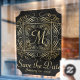 Save the Date and Your Photo in Elegant Gold Foil Look Scrollwork Script on Black. Words can be change to suit your event.