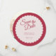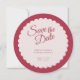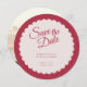Élégante mais moderne et avec une touche de glamour rétro, cette carte Wedding Save the Date comporte un cercle en forme de pétoncle, rose vif et rose clair, avec une élégante calligraphie script ainsi que votre image de choix sur le dos. Customisez ce design avec vos propres informations mariage et photo fiançailles. Utilisez l'outil de conception pour ajuster le placement de l'image (l'exemple d'image utilisé est horizontal).