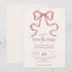 Annoncez votre prochaine célébration avec notre Elegant Pink Hand Drawn Bow Wedding Save the Date, un aperçu charmant de l'élégance et de l'amour à venir. Doté d'un arc joliment dessiné à la main dans des teintes roses douces et délicates, cette carte de date dégage élégance et style. Réalisée avec la plus grande attention aux détails, notre carte de datation save the date est parfaite pour les couples qui cherchent à donner un ton d'élégance intemporelle pour leur jour de mariage. Le luxueux stock de cartons et l'impression exquise assurent que chaque détail de la conception complexe est capturé de manière impeccable, ce qui en fait un gardien chéri pour vos proches. Customisez la carte avec vos noms, votre date de mariage et d'autres détails personnalisés pour refléter votre histoire d'amour unique. Que votre mariage soit une grande affaire ou un rassemblement intime, notre Elegant Pink Hand Drawn Bow Wedding Save the Date promet de captiver vos invités et de construire l'anticipation pour la célébration à venir. Commandez dès maintenant pour commencer votre voyage mariage avec une touche de grâce et de charme, afin que votre journée spéciale soit aussi inoubliable que votre amour.