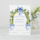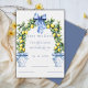 Marquez vos calendriers pour un mariage à retenir ! Cet élégant Save the Date présente de jolis accents avec des citrons vibrants créant une belle arche évoquant l'amour d'un jardin baisé de soleil. Des topiaires élégants dans de superbes vases bleus ornés de chaque côté apportent une touche de sophistication et de charme européen. Avec une typographie raffinée qui améliore le design, cette carte donne le ton d'une célébration remplie d'amour, d'élégance et de beauté intemporelle.