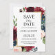 Elégant Burgundy Rouge Blush Blue Floral Wedding Enregistrer la Carte Date. (1) Pour plus de personnalisation, cliquez sur le lien "customiser plus loin" et utilisez notre outil de conception pour modifier ce modèle. (2) Si vous préférez les papiers plus épais / Finition mat, vous pouvez envisager de choisir le type de papier mat.