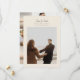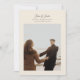 Moderne carte 'Save the Date' calligraphiée avec 5 photos. Cette carte élégante comprend une photo sur le devant et 4 sur le dos avec texte personnalisé et fond de collage