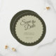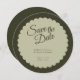 Élégante mais moderne et avec une touche de glamour rétro, cette carte Wedding Save the Date comporte un cercle en forme de coquillage, deux nuances de calligraphie verte et élégante. Customisez cette conception avec vos propres informations mariage.