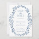 Save The Date Élégant Mariage de fleurs victorien bleu Dusty
