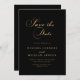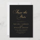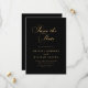 Élégant Noir Noir Script Mariage Enregistrer la Date. Le design présente une belle typographie couleur or sur le noir. Personnalisez avec le nom et l'information mariage de Mariée et de Groom. Le dos est affiché en noir mais il peut être n'importe quelle couleur. Visitez notre magasin Austen & Grace pour voir la suite mariage complète, les produits correspondants et plus encore, et contactez-nous si vous avez besoin de produits complémentaires ou de toute assistance : contact@austenandgrace.com