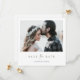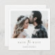 Ce mariage photo carré simple et chic, à l'exception du modèle de la carte date, présente un design élégant, minimaliste et moderne. Parcourez notre boutique pour trouver des versions de ce design dans un format rectangulaire en formats de carte plate, de carte postale et d'aimant dans différentes couleurs ! L'avant présente vos prénoms sous votre photo préférée et un message "save the date" transmis avec un mélange frappant de deux polices distinctes, avec "the" dans un script léger et fluide entre le reste du message, qui est en coque supérieur avec un look formel audacieux et net. Cet élément design est inclus de part et d'autre et ne peut pas être modifié, bien que vous pouvez choisir de le supprimer sur le dos pour un look encore plus simple. Le texte 'Save the Date' sur le devant est un élégant vert foncé moyen, et il est en noir sur le dos. Et au verso, vous pouvez bien sûr, en plus de remplacer nos exemples d'informations par les vôtres, supprimer des champs de texte dont vous n'avez pas besoin, ou modifier le libellé, ainsi que modifier la police, la taille et la couleur. La couleur par défaut pour le texte de vos noms à l'avant est le noir, et le texte à l'arrière est un mélange de noir et légèrement adouci. La couleur arrière - plan par défaut sur les deux côtés est définie comme transparente, pour laisser la couleur de papier servir simplement de tonalité de base. Mais vous pouvez modifier ceci et changer l'apparence d'un ou des deux côtés à cet égard aussi bien pour convenir à votre style. Customisez ce mariage minimaliste élégant enregistrez le modèle de la carte à plat date avec les outils d'édition intuitifs de zazzle, votre photo préférée et votre inspiration et faites-en le vôtre unique!
