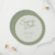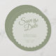 Élégante mais moderne et avec une touche de glamour rétro, cette carte Wedding Save the Date comporte un cercle en forme de coquille, une calligraphie verte sauge et élégante. Customisez cette conception avec vos propres informations mariage.
