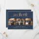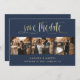 Personnalisée marine bleu et or mariage 3 photo enregistrer les cartes de date avec police calligraphie moderne. Personnalisez facilement cette carte avec vos images et les détails du mariage.