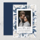 Share your exciting news with this elegant navy blue and silver watercolor floral photo Save the Date card. Featuring a beautiful floral botanical design with soft watercolor details and romantic calligraphy script, this card is the perfect blend of modern style and timeless elegance.