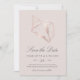 Avertissez les invités de votre prochaine destination, plage, ou mariage d'île tropicale avec ces beaux été enregistrer les cartes de date avec une fausse illustration rose de la coquille de conque en feuille d'or sur un arrière - plan rose pâle doux. Élégant script gris foncé et écriture de bloc affiche les détails de votre mariage (noms, date du mariage, emplacement et site Web).