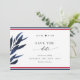Save The Date Elégant rouge, blanc et bleu, Mariage feuille