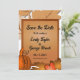 Ce mariage de automne élégant, à l'exception de l'invitation à la date, est parfait pour un mariage d'automne moderne. Le design simple est composé de feuilles de chou et d'un citrouille avec une élégante typographie noire sur un arrière - plan en bois rustique.