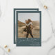 Elégant script calligraphie simple 2 photos bleu poussiéreux et faux argent foil mariage enregistrer la date.