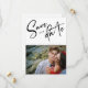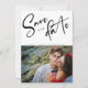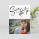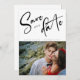 Rendez votre annonce spéciale inoubliable avec notre carte "Save the Date" de mariage avec photo et écriture diagonale élégante. Cette carte magnifiquement conçue présente une écriture noire diagonale saisissante qui indique "Save the Date" en haut, ajoutant une touche d'élégance moderne. En dessous de l'annonce, vos noms et date de mariage sont affichés dans une police sans-serif élégante, espacés parfaitement pour créer un look propre et sophistiqué.