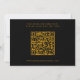 Cette élégante carte mariage noir et or à la fine pointe de la technologie est parfaite pour un mariage moderne. Le design simple présente une élégante calligraphie dorée sur un arrière - plan noir. La carte comprend également un code QR pour le site web mariage au verso.