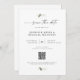 Un design élégant et élégant est doté d'un script moderne de typographie Save The Date, agrémenté d'une végétation d'eucalyptus. Customisez facilement avec vos détails de choix. Un code QR est inclus pour insérer l'URL de votre site mariage, afin que vos invités puissent obtenir des détails supplémentaires.