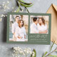 Annoncez vos nouveautés dans le style avec notre Elegant Script photo enregistrer la carte de date. L'élégant save the date card comporte 2 de vos photos fiançailles avec "save the date" dans un script de calligraphie moderne blanc contre un arrière - plan vert sage. Personnalisez le simple enregistrement de la carte de date en ajoutant vos noms, date mariage et emplacement du mariage. Le minimaliste enregistrer la carte date revient à un arrière - plan vert sauge foncé solide ou une couleur de votre choix.