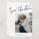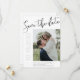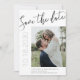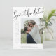 Elegant Modern Handwritten Calligraphy Save the Date Card with a delicate thin fonts and large wedding date numbers vertically next to your photo. Upload your favourite engagement couple picture and customize the template by selecting any colours and fonts you want for your wedding announcements.
