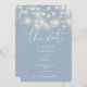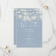 This elegant dusty blue save-the-date invitation, featuring pretty string lights, can be personalized with your information in chic typography with your wedding website QR code and details on the reverse. Designed by Thisisnotme©