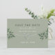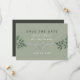 Simple, élégant, rustique sage vert mariage Enregistrer la date Invitation avec faux coeur de corde en argent, aquarelle verte et script de calligraphie moderne.
