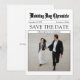 Cette carte à plat Save the Date, dans le style classique unique et bien-aimé, journal vintage attirera l'attention de vos invités. L'élégante calligraphie de style ancien et la typographie simple et moderne ressemble à un journal. Il présente une esthétique classique, régale et minimaliste et est presque entièrement personnalisable. Sous le nom du journal sont la date mariage et rappeler qu'une invitation sera envoyée plus tard. En première page, on peut lire : "Enregistrer la date". En dessous il y a une photo et la légende est les prénoms du marié et de la mariée. Vous pouvez inclure un code QR à l'arrière de la carte plate si nécessaire. Parce qu'il est minimaliste, ce style design est approprié pour un hiver, printemps, été et mariage de automne et selon le contenu personnalisable, il peut être formel, décontracté, sentimental, amusant, drôle ou tout ce que vous voulez qu'il soit. Cette Sauvegarde de la Date peut être envoyée par courrier ou en téléchargement instantané. Consultez la collection de Mariages ci-dessous pour connaître les belles options qui s'offrent à vous. Félicitations de Home Together !
