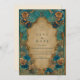 An exquisite Islamic wedding design inspired by the beauty of mosque architecture and traditional arabesque patterns. The emerald-green background and ornate gold detailing evoke luxury and devotion, making it perfect for couples celebrating their union with elegance and spiritual grace.