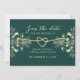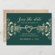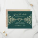 Le vert émeraude chic et l'or sauvent la carte datant avec d'élégants accents floraux et un motif de coeur romantique. Ce design moderne est entièrement personnalisable avec vos noms, date mariage et détails, ce qui en fait la meilleure façon d'annoncer votre célébration. Imprimée sur des cartons haut de gamme, cette carte intemporelle donne le ton à votre mariage et à votre feuille pour une impression durable sur vos invités.