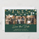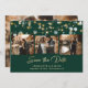 Elégante photo personnalisée vert émeraude et or mariage enregistrer les cartes de date avec un titre de script en faux or moderne. Notre mariage, sauf la date, présente un montage photo de 3 images contre un arrière - plan vert émeraude orné de lampes à cordes sur l'avant et d'une photo à l'arrière. Personnalisez facilement ce vert émeraude enregistrez la carte de date avec vos images et les détails du mariage. Pour des demandes personnalisées, envoyez-nous un message via Zazzle conversation.