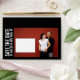 Save the Date Engagement Photo Envelopes. Matches the 5 x 7 inch Save the Date Flat Card design in the gallery. Customize with your photo and personal information using the prompts. THEN select "CUSTOMIZE IT" to see a preview with your text. Use the easy to use menu options to adjust spacing, colours and font sizes. If you have a dark picture or envelope leave the white rectangle for a space to handwrite your guests addresses. If your design is lighter you can delete this item. Make sure you have room for a stamp which does not cut off anyone in your picture and that there is a CLEAR space to put in your guests address which the post office will be able to read so that your SAVE THE DATES get to your guests as intended. Please note. The quality of the printing is high but it is an envelope (non-glossy) so your picture will NOT be as good a copy as that on you matching flat card.